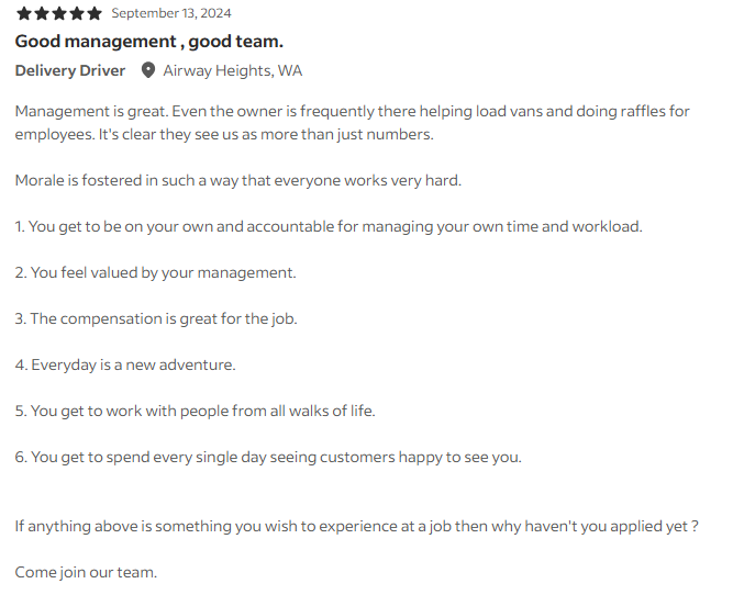 If you like staying active, working on your own, and are an extremely safe driver — you’ll do well here!